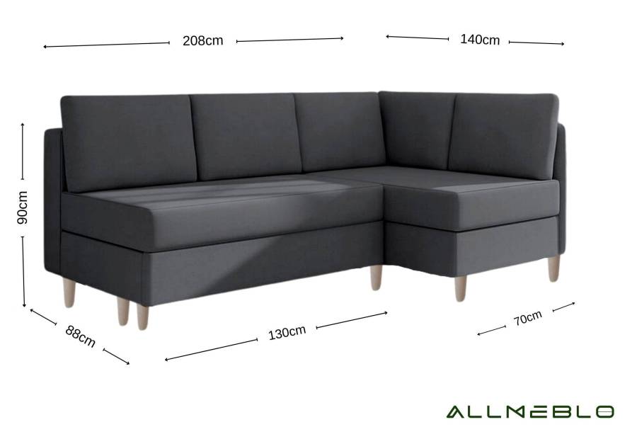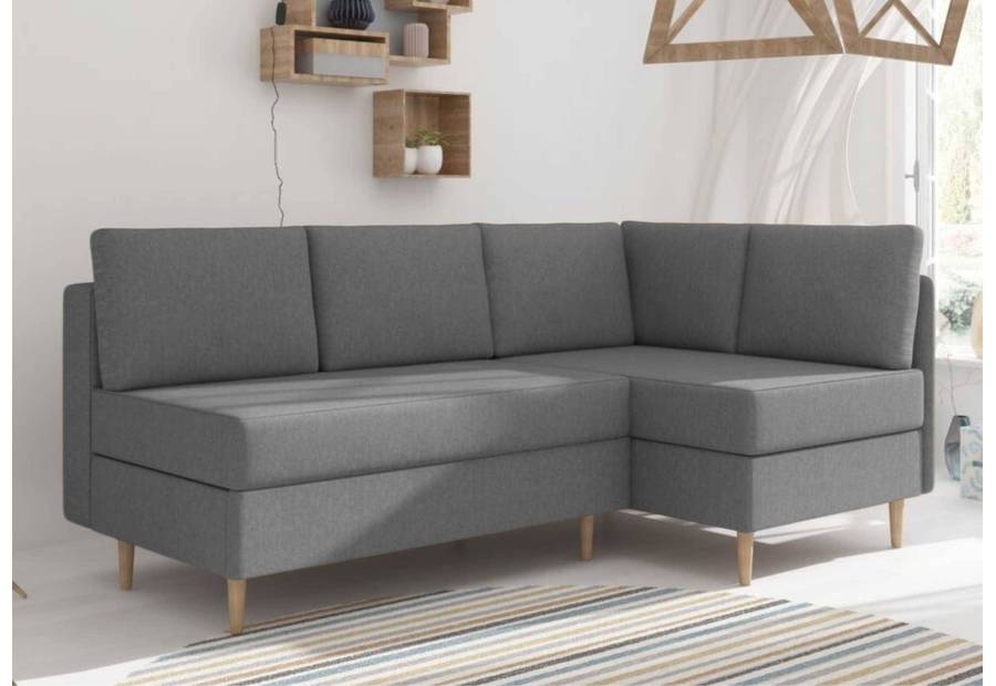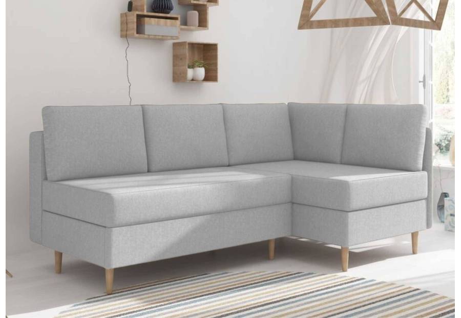 Skandynawski narożnik PRATO to wyjątkowo urokliwy mebel, który swoją prostotą i elegancją doda szykowności każdemu wnętrzu. Wysokie, drewniane nóżki w kształcie stożka są stabilne i ułatwiają utrzymanie czystości pod meblem. Narożnik posiada funkcję spania oraz wolną przestrzeń na pościel. Występuje w wersji prawostronnej i lewostronnej do wyboru. Dostępny jest w szerokiej gamie kolorystycznej.